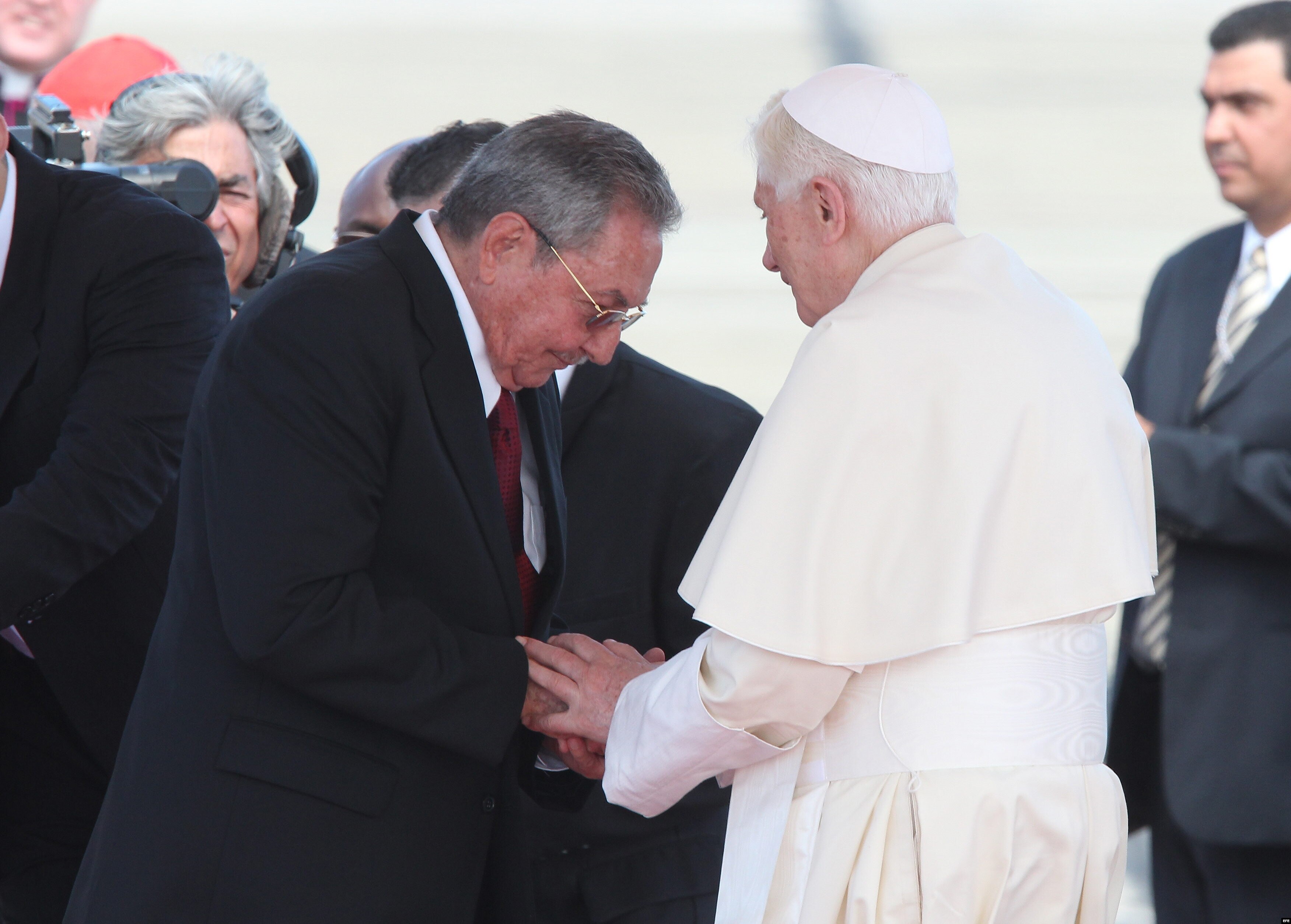 Pope Benedict XVI greets Raul Castro